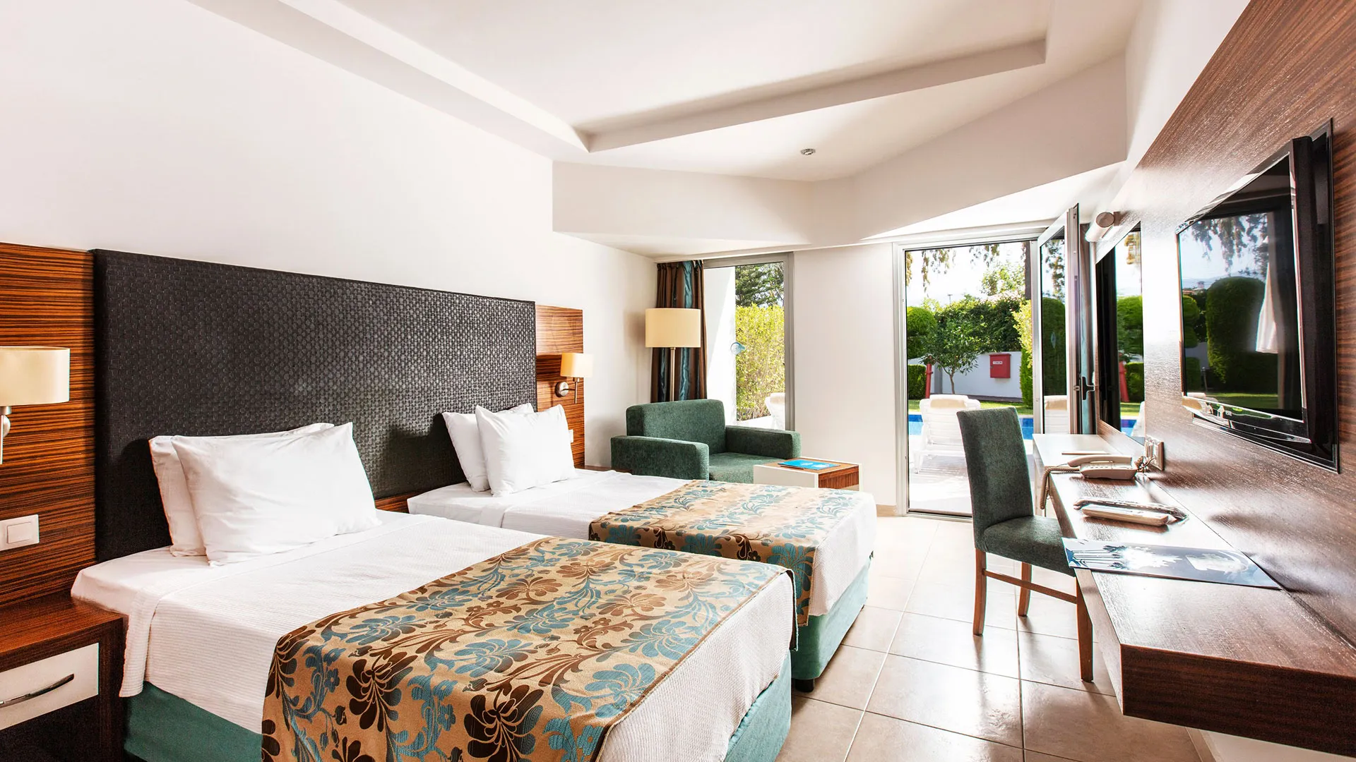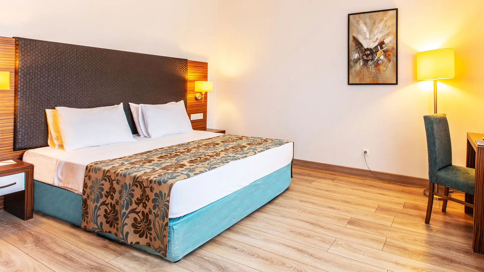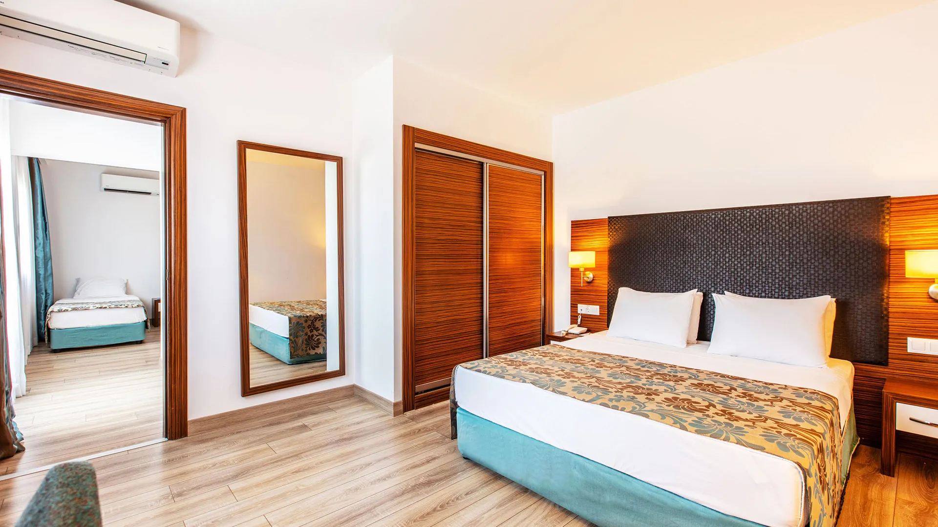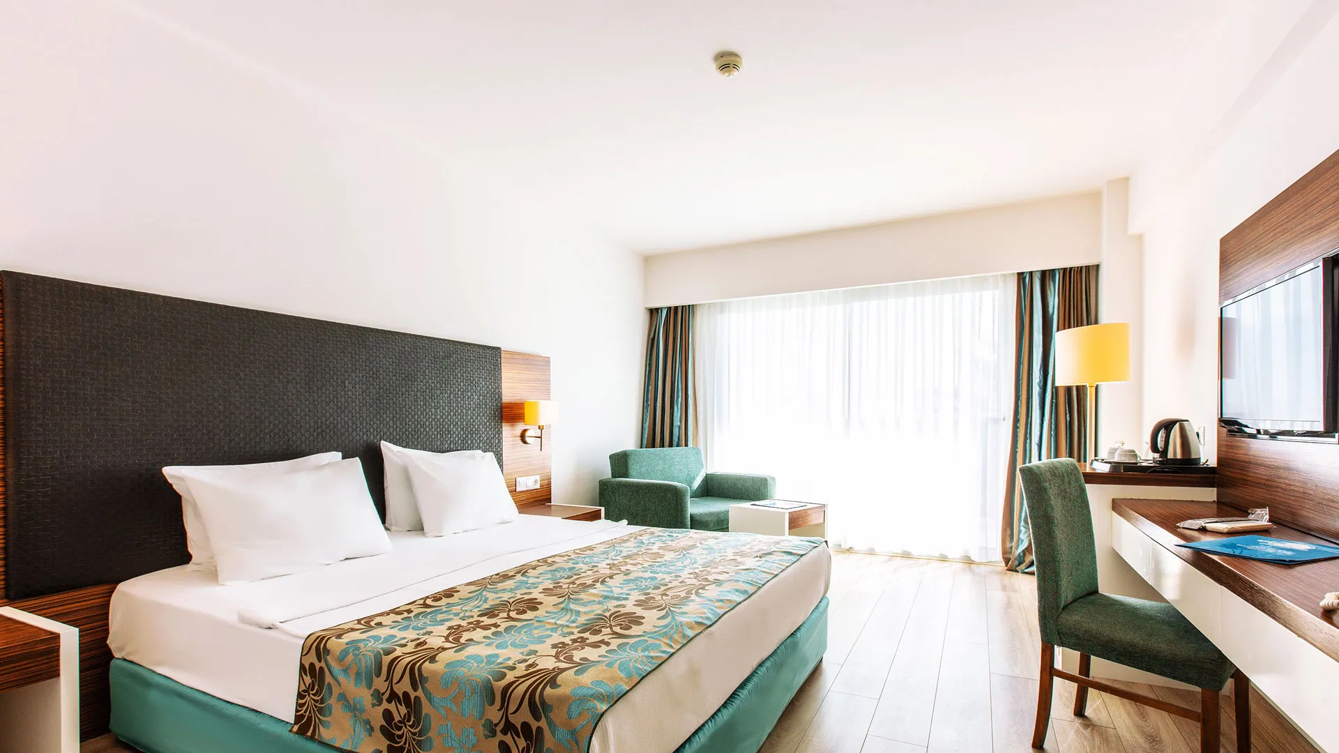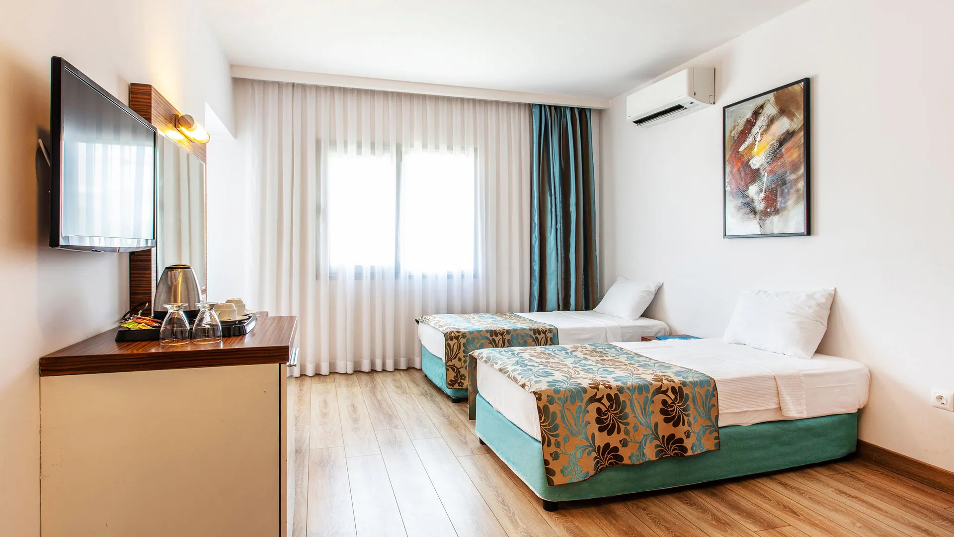 Изисканите стаи на Palm Wings Kusadasi са оформени с мек мокет и внимателно подбрани детайли, които създават уютна атмосфера. Всяка стая разполага с модерни удобства като плосък телевизор, климатик и минибар, а балконът ви предлага изглед към прекрасната градина на комплекса.