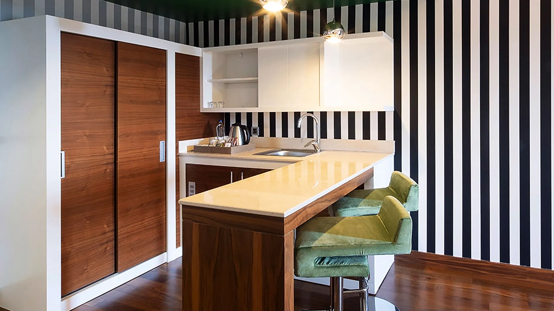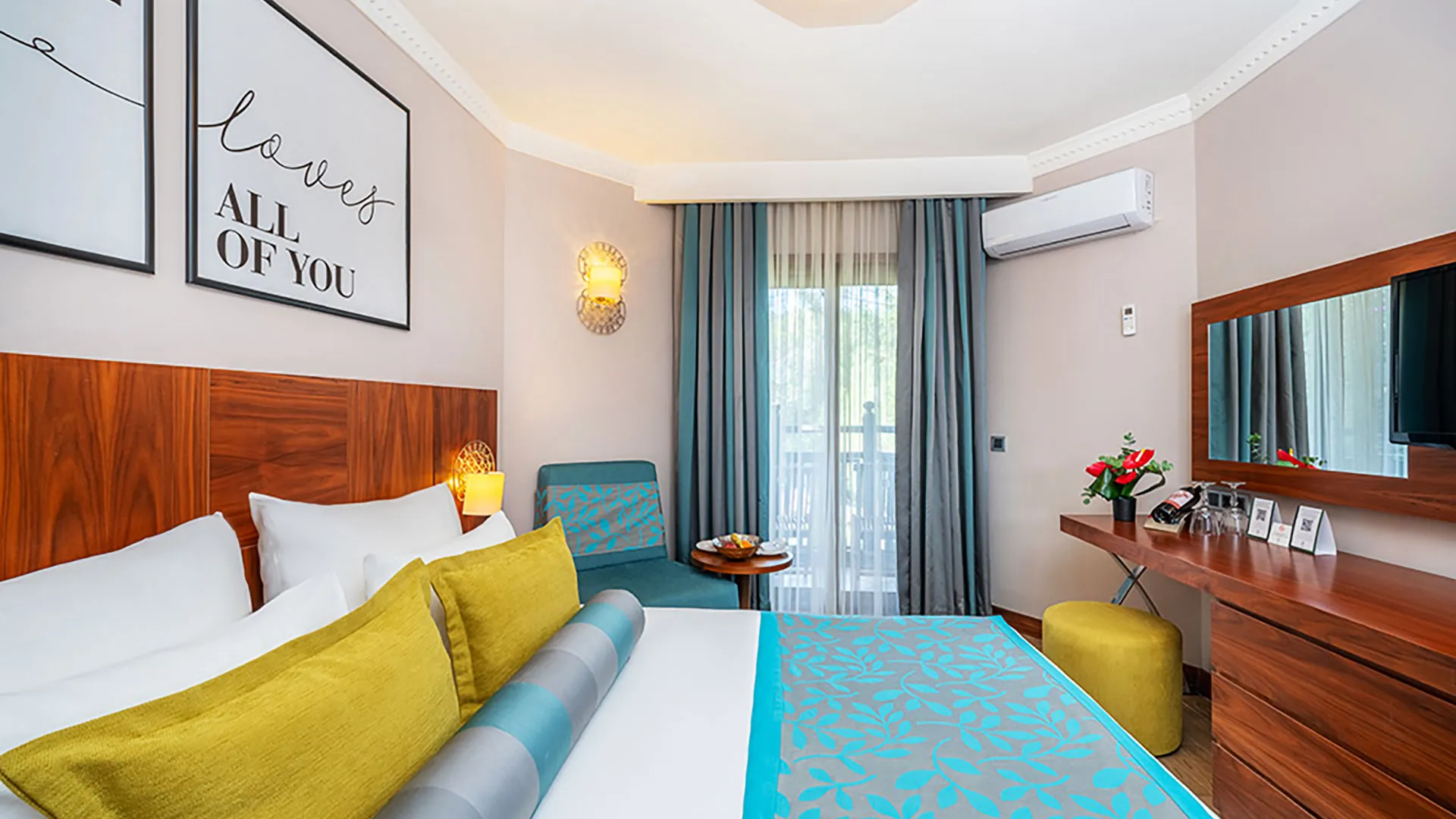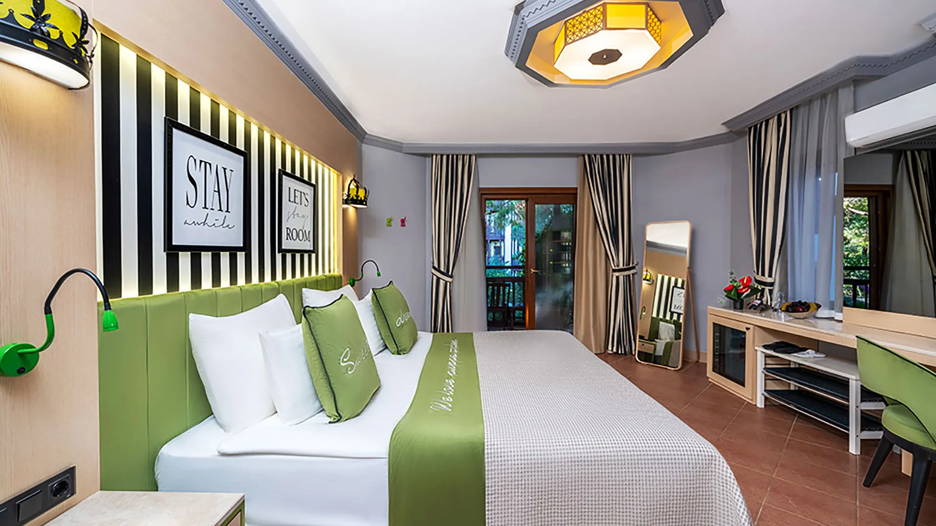 Стаите са оборудвани с: централна климатизация (в основната сграда), индивидуален климатик в бунгалата и градинската сграда, минибар (безалкохолни напитки и бира - безплатно, ежедневно попълване), сателитна телевизия с руски език канали, LCD екран, телефон с директно избиране, душ във всички стаи, сешоар, сейф (безплатно), балкон.
