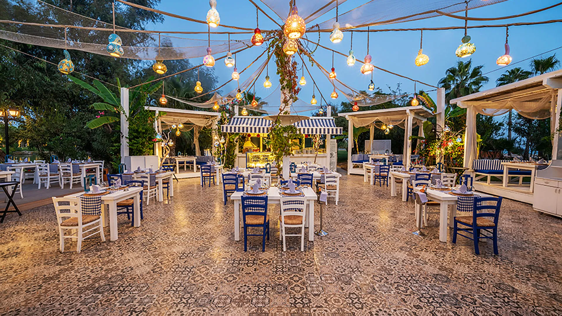 Основен ресторант, 5 а-ла-карт ресторанта (турски, италиански, рибен /за вечеря, 1 посещение за 7 дни безплатно в един от трите/, снек и бургер /за обяд/, 10 бара, 4 открити басейна, включително един с полуолимпийски размери, закрит басейн (отопляем за зимния период), Аквапарк за малки и големи, Спа център, магазини, пералня, 4 конферентни зали. За децата: детски клубове: 2 (мини-клуб 4-11г., джуниър-клуб 12-17г.), детски басейн, детска площадка, детски бюфет.