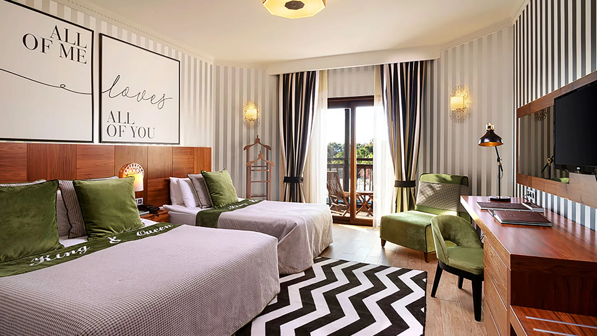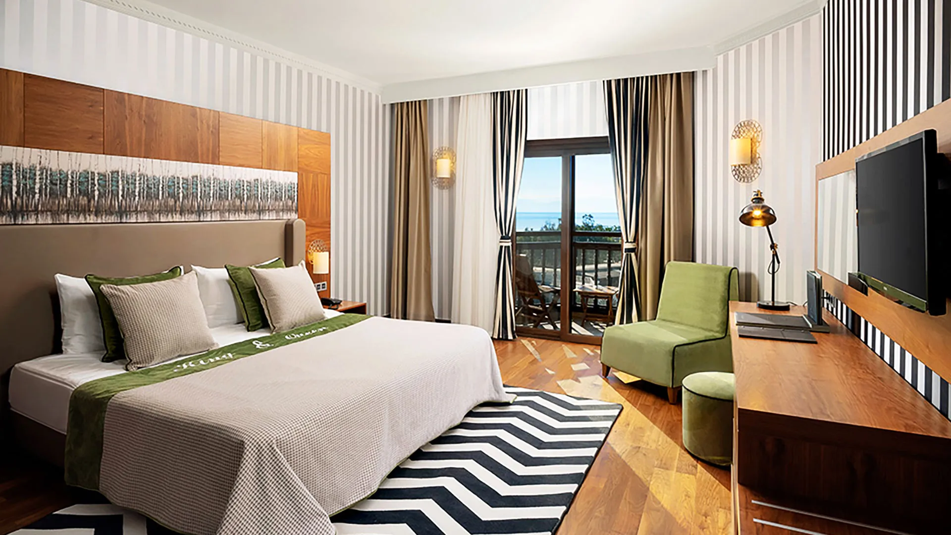 Хотелът разполага с 455 стаи, 278 в основната сграда, с изглед към морето, басейна и градината.