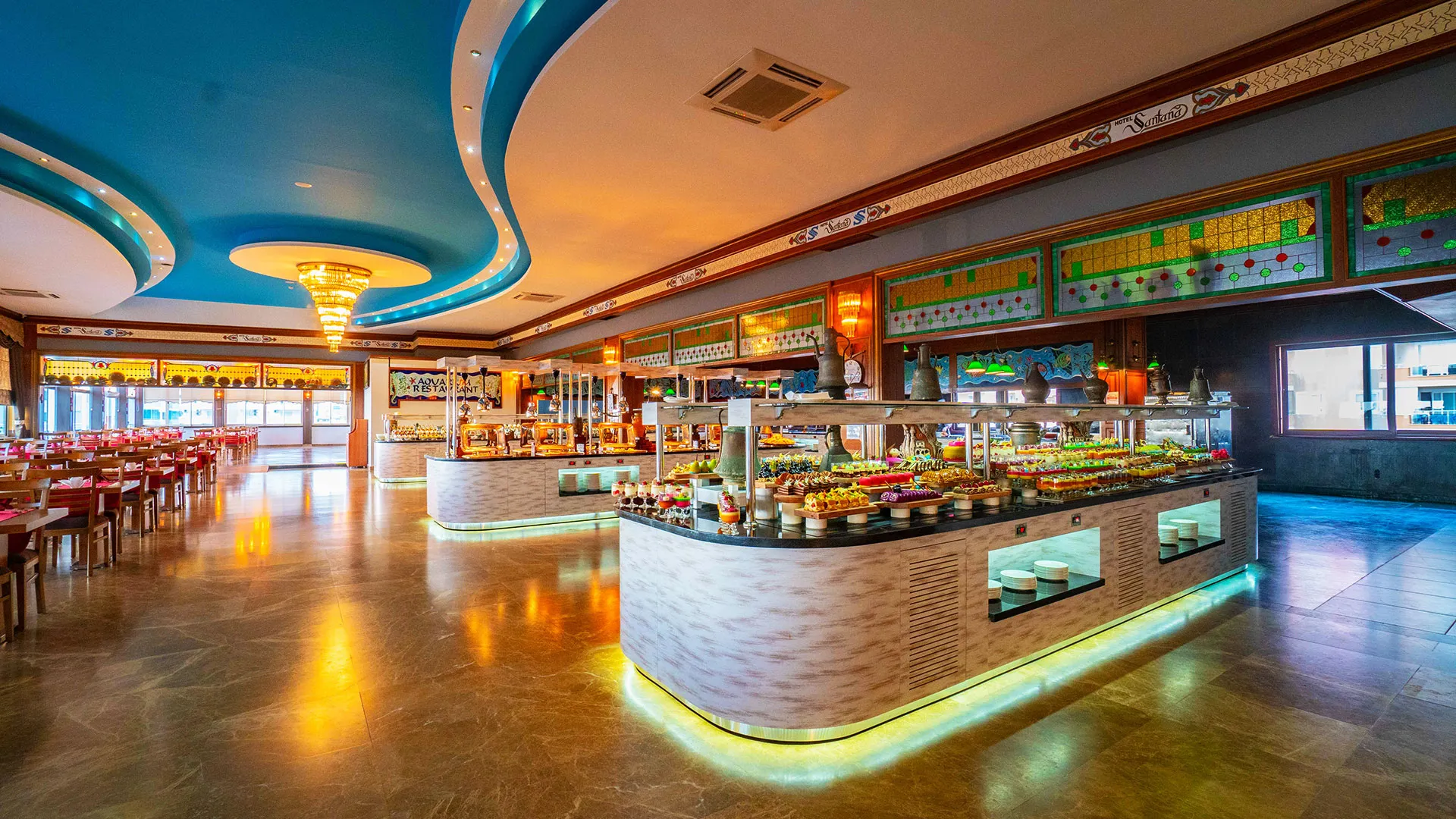 Кулинарните преживявания в хотела са впечатляващи, с ресторанти, които предлагат както традиционни турски специалитети, така и международна кухня. Разнообразието от ястия и напитки е подходящо за всеки вкус и предпочитания, а баровете на хотела предлагат широка гама от напитки, които могат да се насладят край басейна или в уютната атмосфера на лоби бара.