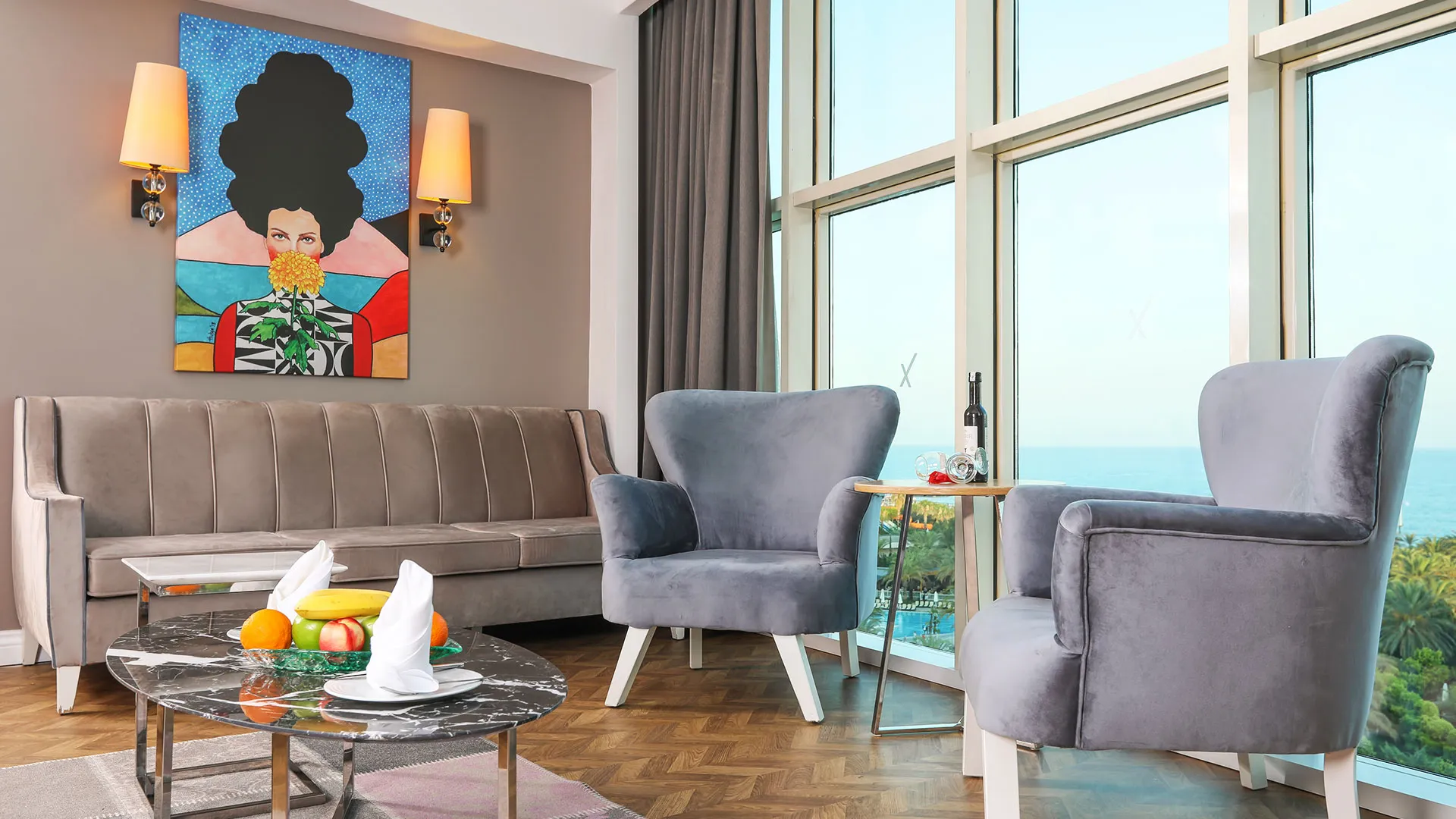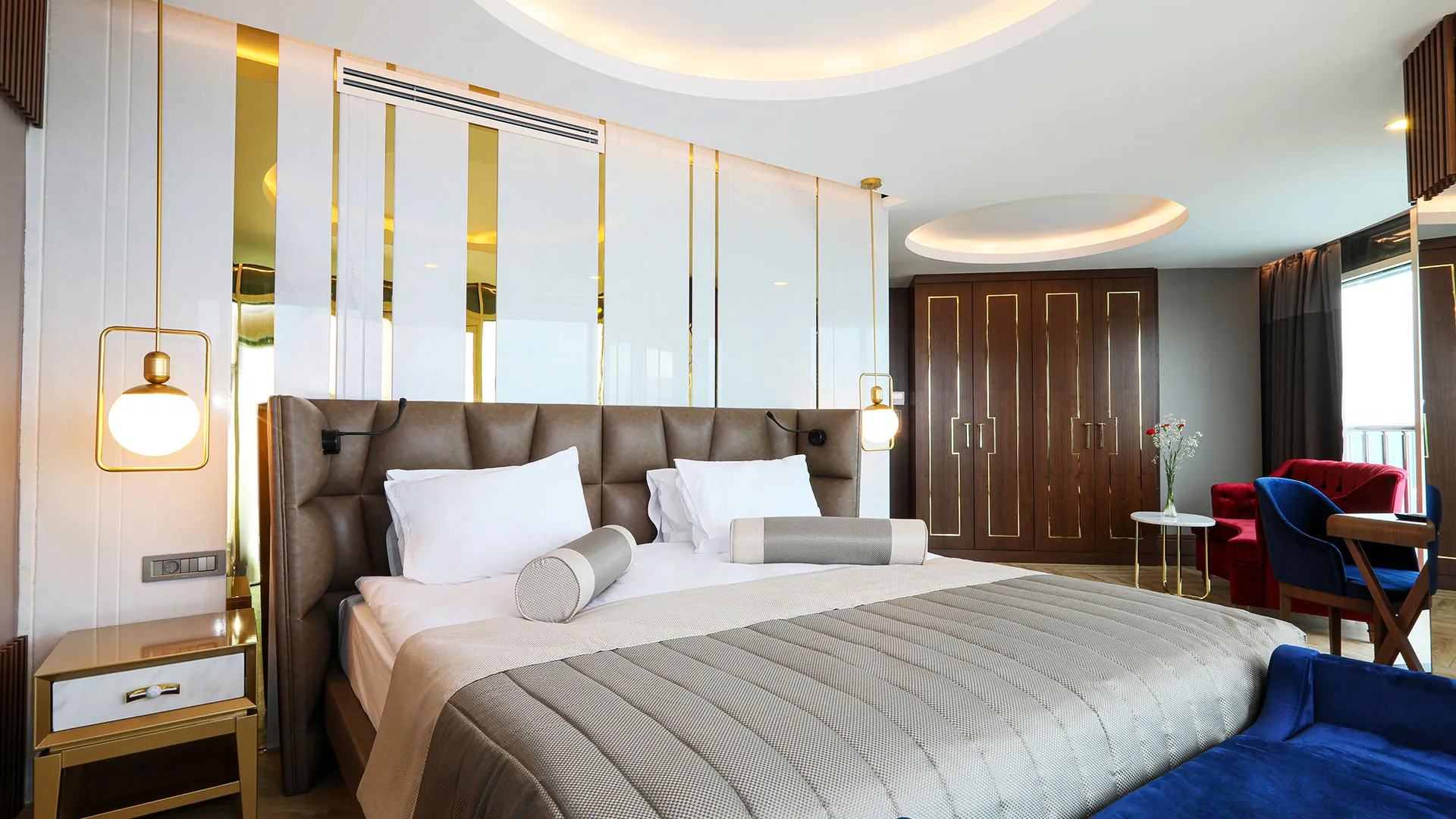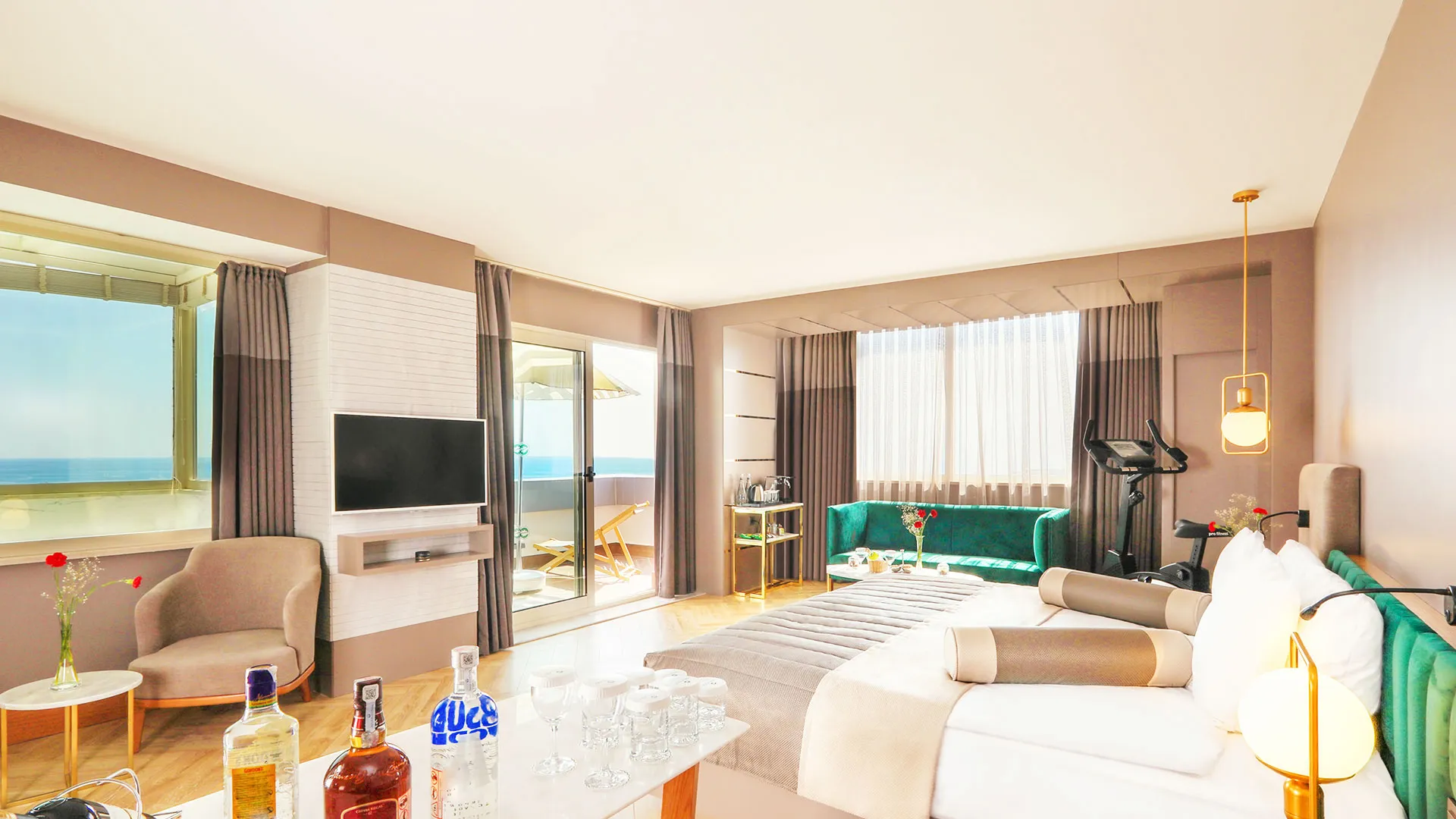 Хотелът разполага с изискани стаи и суити, обзаведени с елегантен и съвременен дизайн, които предлагат на гостите комфорт и уют. Всяка стая е оборудвана с модерни удобства и предлага невероятна гледка към морето или градините на хотела.