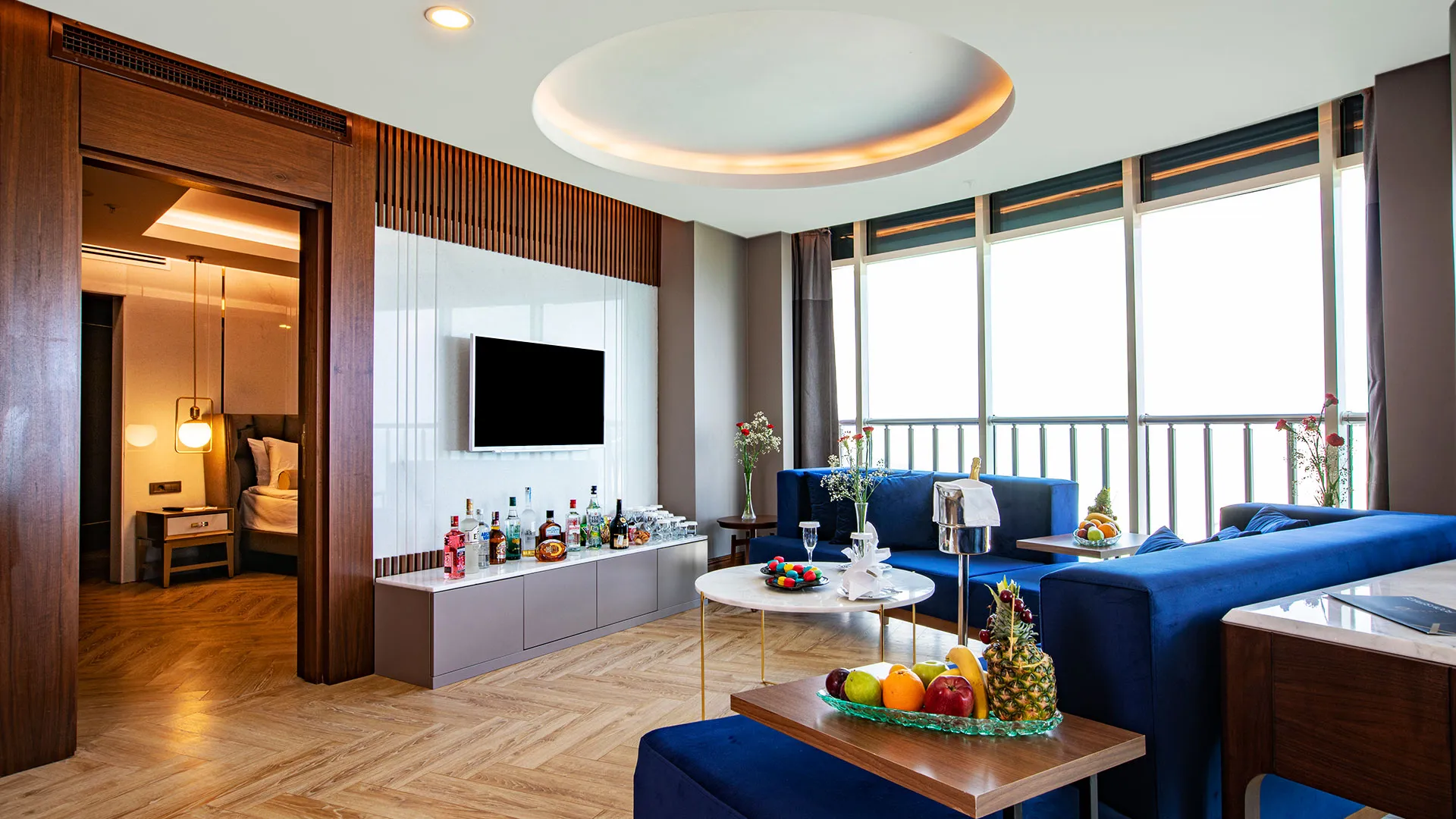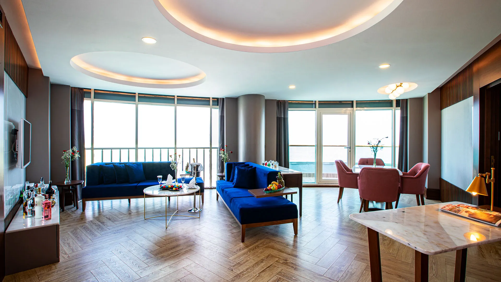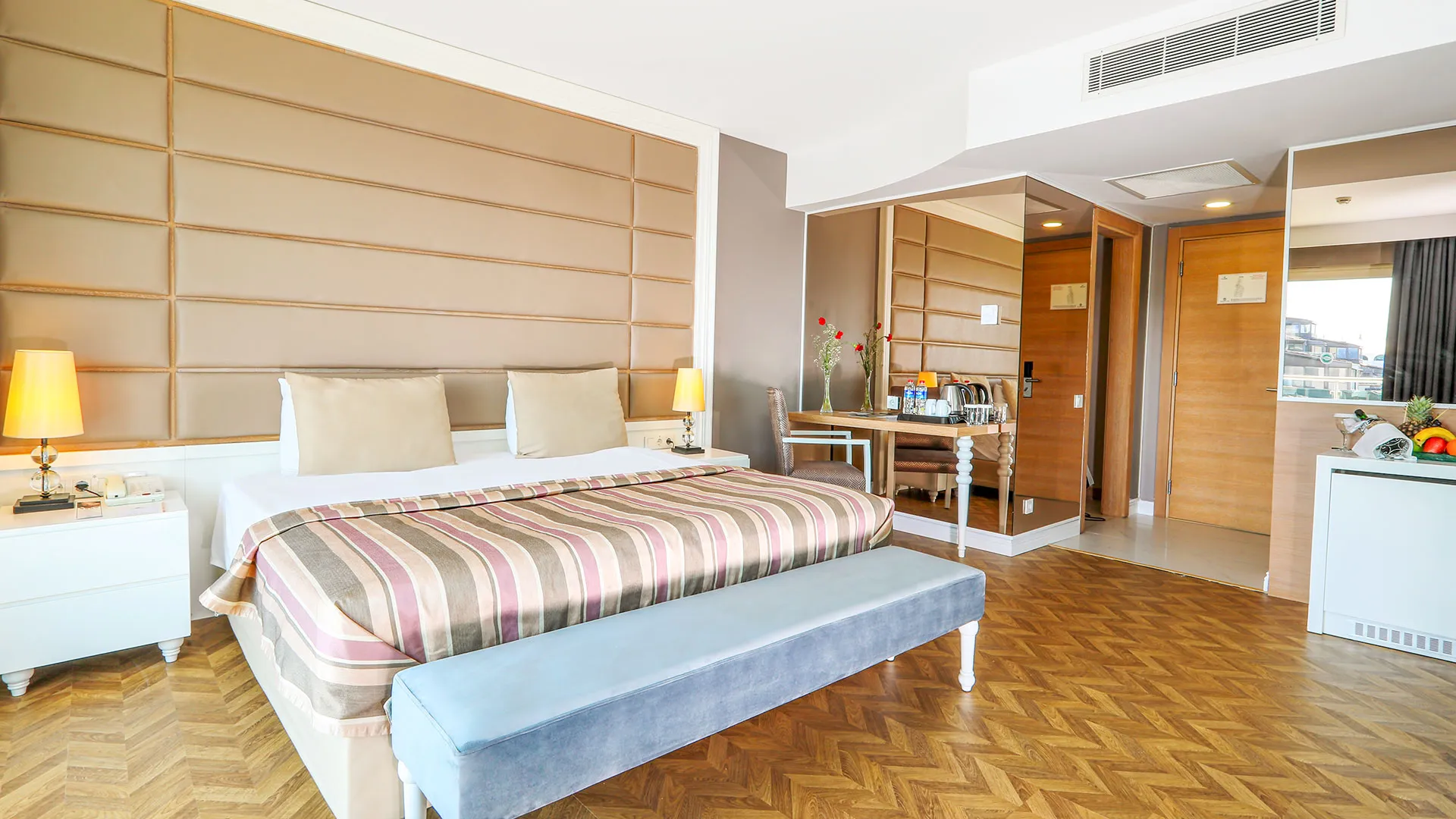 Хотелът разполага с изискани стаи и суити, обзаведени с елегантен и съвременен дизайн, които предлагат на гостите комфорт и уют. Всяка стая е оборудвана с модерни удобства и предлага невероятна гледка към морето или градините на хотела.