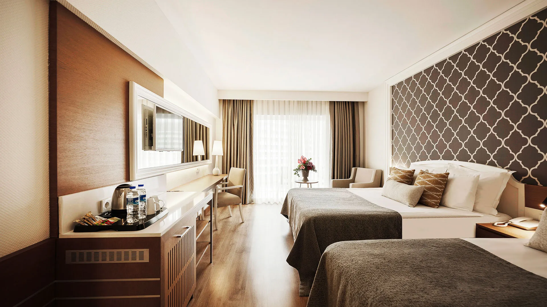 Своята елегантност, изискан дизайн и внимание към детайлите правят Sherwood Exclusive Lara едно от най-привлекателните места за почивка в Лара, където гостите могат да се потопят в роскошта и уют на брега на морето.
