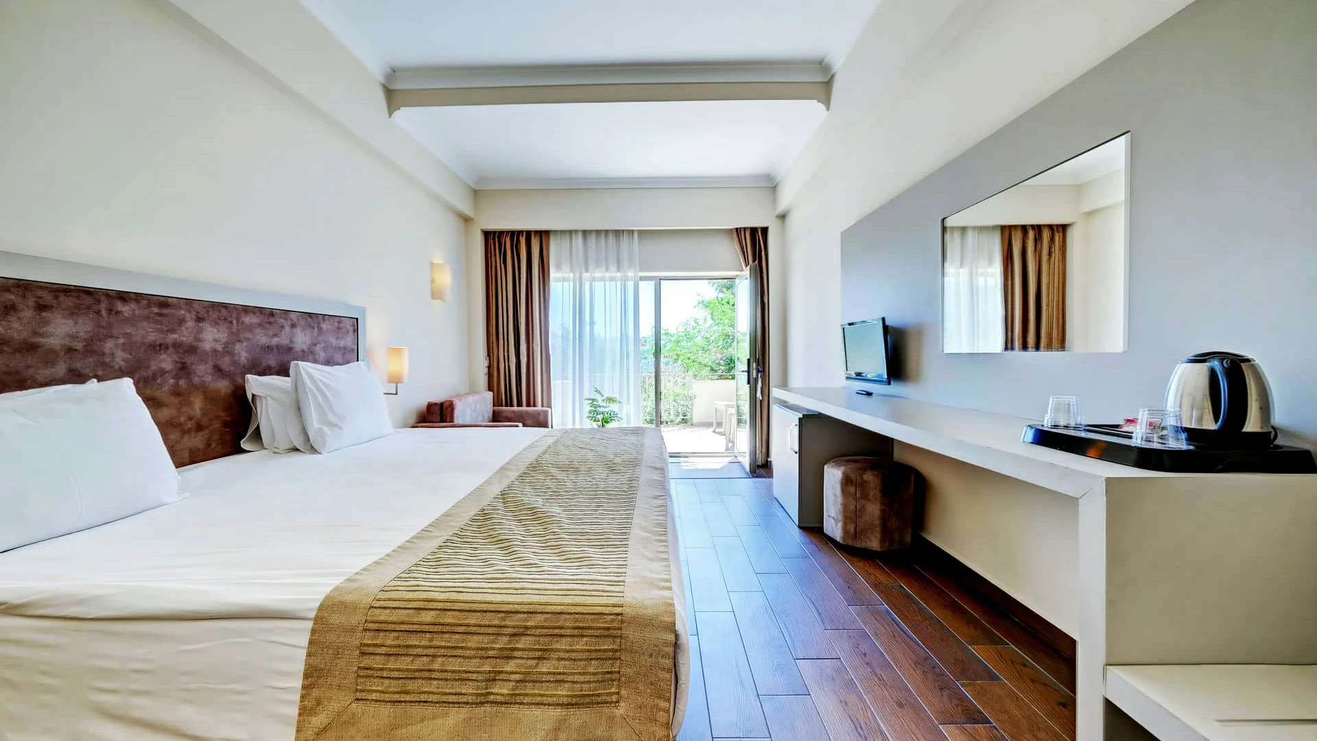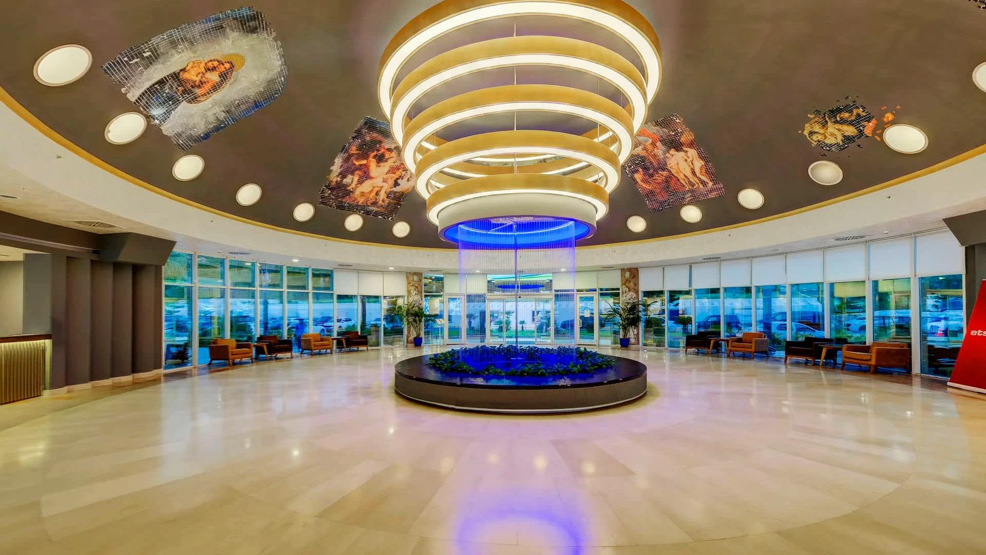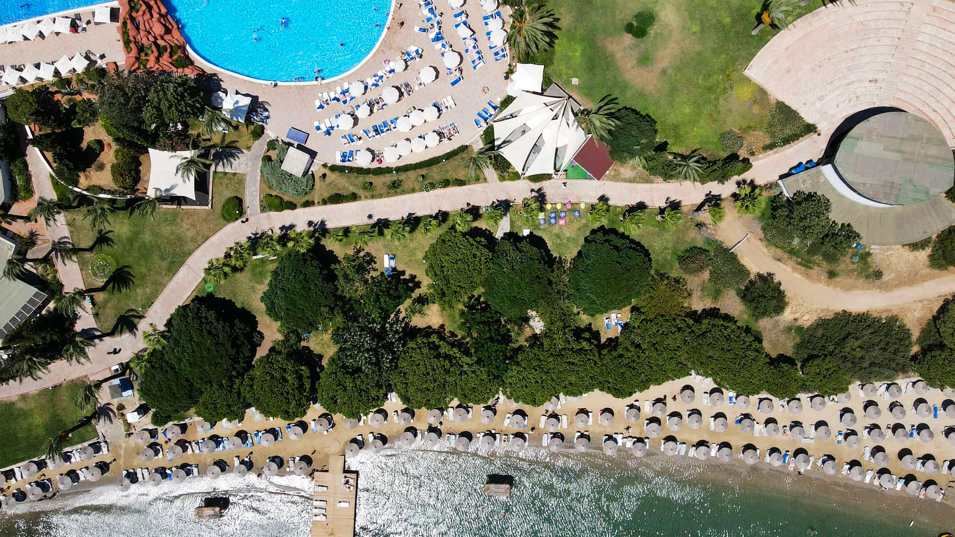 Комплексът разполага с голям открит басейн, детски басейн и вътрешен басейн, както и частен плаж с шезлонги и чадъри. Гостите могат да се насладят на множество водни спортове като уиндсърфинг, каяк и джетове.