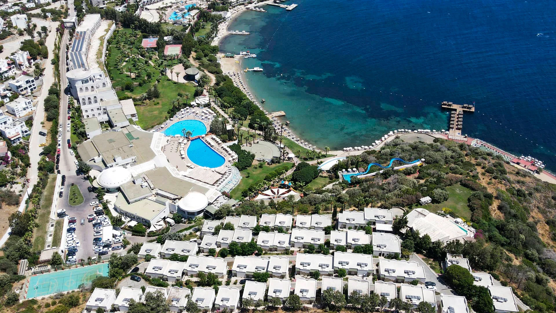 Yasmin Bodrum Resort 5* е луксозен хотел, разположен на брега на Егейско море в района на Тургутрейс, Бодрум, известен със своя просторен плаж и панорамни гледки към морето.